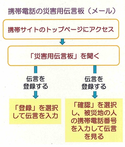 - 災害用伝言板の利用料・パケット通信料は無料です。(他社の災害用伝言板のアクセスにはパケット通信料が必要です。)