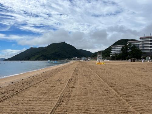 先日の台風の影響により、渋川海水浴場に多くの海藻が打ち上がっていますが、 トラクターによる漉き込み作業できれいになりました!